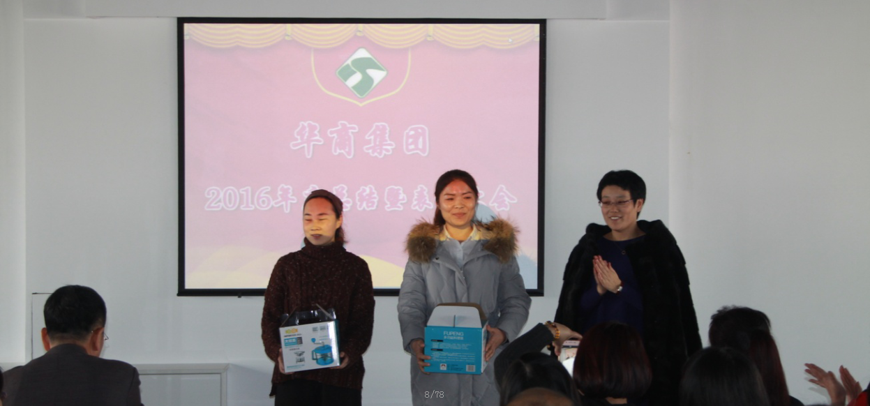 2017年1月25日,華商集團(tuán)隆重召開了2016年總結(jié)暨表彰大會。董事長朱萬穎先生發(fā)表重要講話,全面盤點2016年取得的成績,同時對公司2017年的工作計劃部署及目標(biāo)進(jìn)行總體規(guī)劃,并且對先進(jìn)員工及部門進(jìn)行隆重的表彰!每個華商人都信心百倍,將以此為鼓勵,再接再厲,再創(chuàng)佳績!此次大會圓滿成功,會后,公司為員工準(zhǔn)備了特別豐厚的新年福利,每位華商人都滿載著豐富的獎品和滿心的喜悅迎接春節(jié)。我們將團(tuán)結(jié)一心,共同譜寫2017年新的篇章!