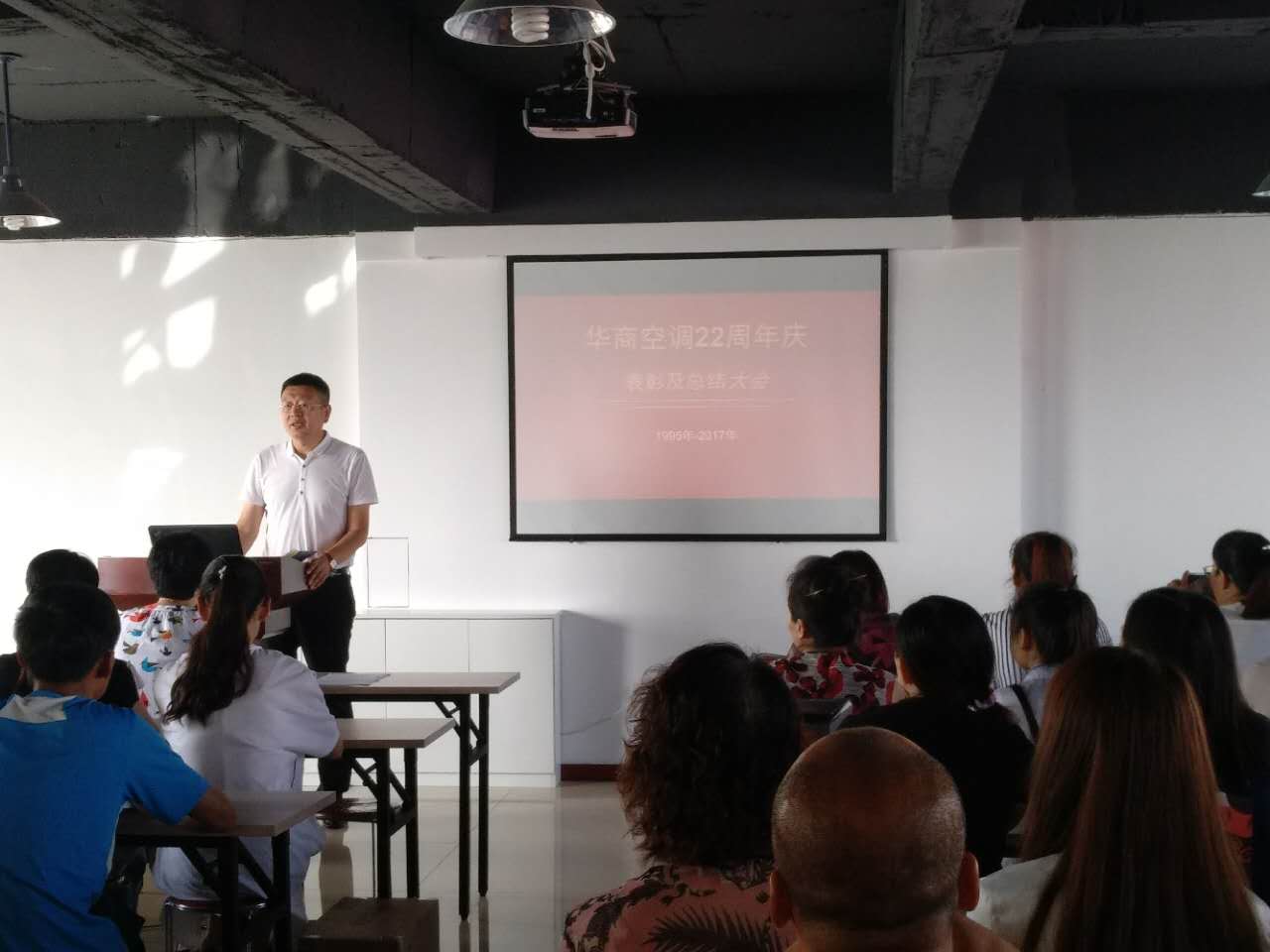 2017年7月11日,華商集團22周年慶總結(jié)大會活動盛大召開,每位員工都滿面笑容,斗志昂揚。22周年慶活動的成功離不開每一位華商人的付出,正因為我們的團結(jié)一心和不懈努力,最終超額完成銷售目標!百I空調(diào)到華商”不僅僅是一句口號,更是濱城老百姓的口碑與心聲!給全市人民帶去最大的優(yōu)惠和最涼爽的夏日是我們的使命,我們將以這次活動的成功為鼓勵,再接再厲,再創(chuàng)輝煌!。讓我們相約2018.6.16。!
